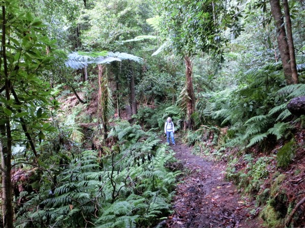 Wir tauchen ein in einen Urwald aus Lorbeer und Farnen. Der Weg ist ein wenig schlammig von den Regenfällen der letzten Wochen im Nordosten der Insel. Wir treffen kaum Wanderer, dafür sind aber schon ein paar Trainingsläufer auf dem Trail unterwegs.