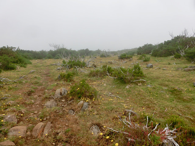 Bei unserem letzten Besuch vor drei Jahren - link 2018 - konnten wir kurz vor der Madre durch einen Ginstertunnel zum Pico Alto queren. Das wollen wir wieder versuchen. Diesmal geht es nur mit Machete - und leider wird es nach den 100 m Ginstertunnel nur noch schlimmer. Die ehemalige Graspiste ist so verwachsen, dass wir für die weiteren 900 m über eine Stunde brauchen. Danke Piet, dass du für drei Frauen den Weg freigemacht hast !!!